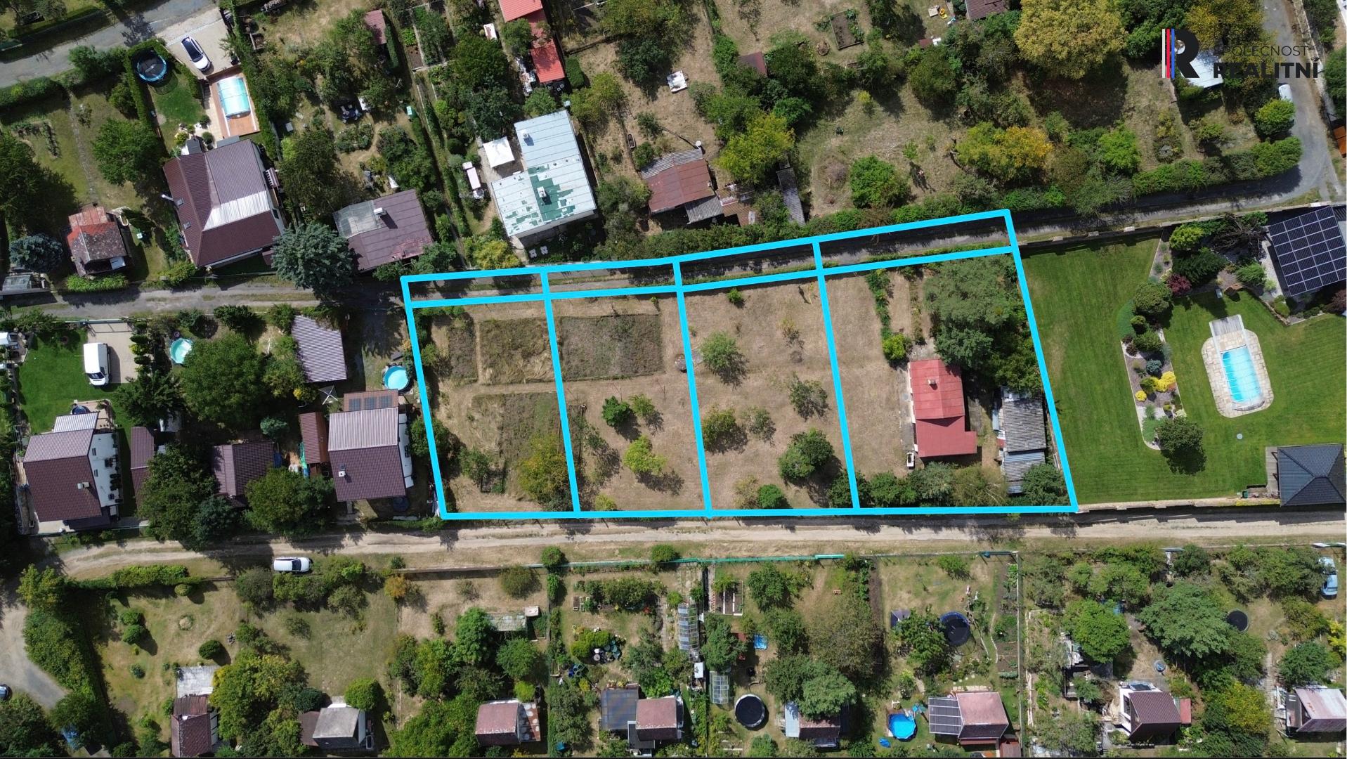 Unikátní nabídka – Praha–Cholupice, 4 stavební parcely pro rekreační stavby – chata 80 m² a tři dvoupodlažní chaty 25 m²