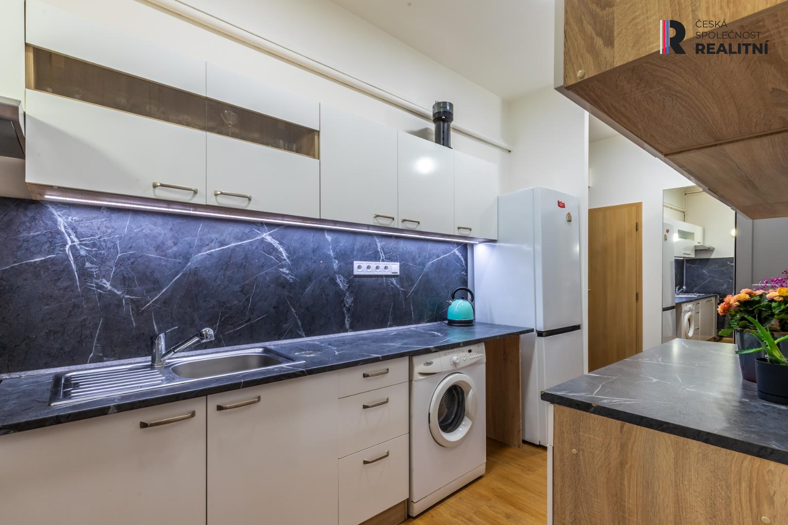 Byt je vytápěn plynovými vafkami a klimatizací, ohřev vody je řešen karmou. Okna jsou nová a je z nich teď krásný výhled na kvetoucí stromy v ulici. K bytu náleží sklep ve zrekonstruovaném suterénu a můžete využívat i uzamykatelný balkónek v mezipatře k příjemnému posezení s výhledem do tichého vnitrobloku.