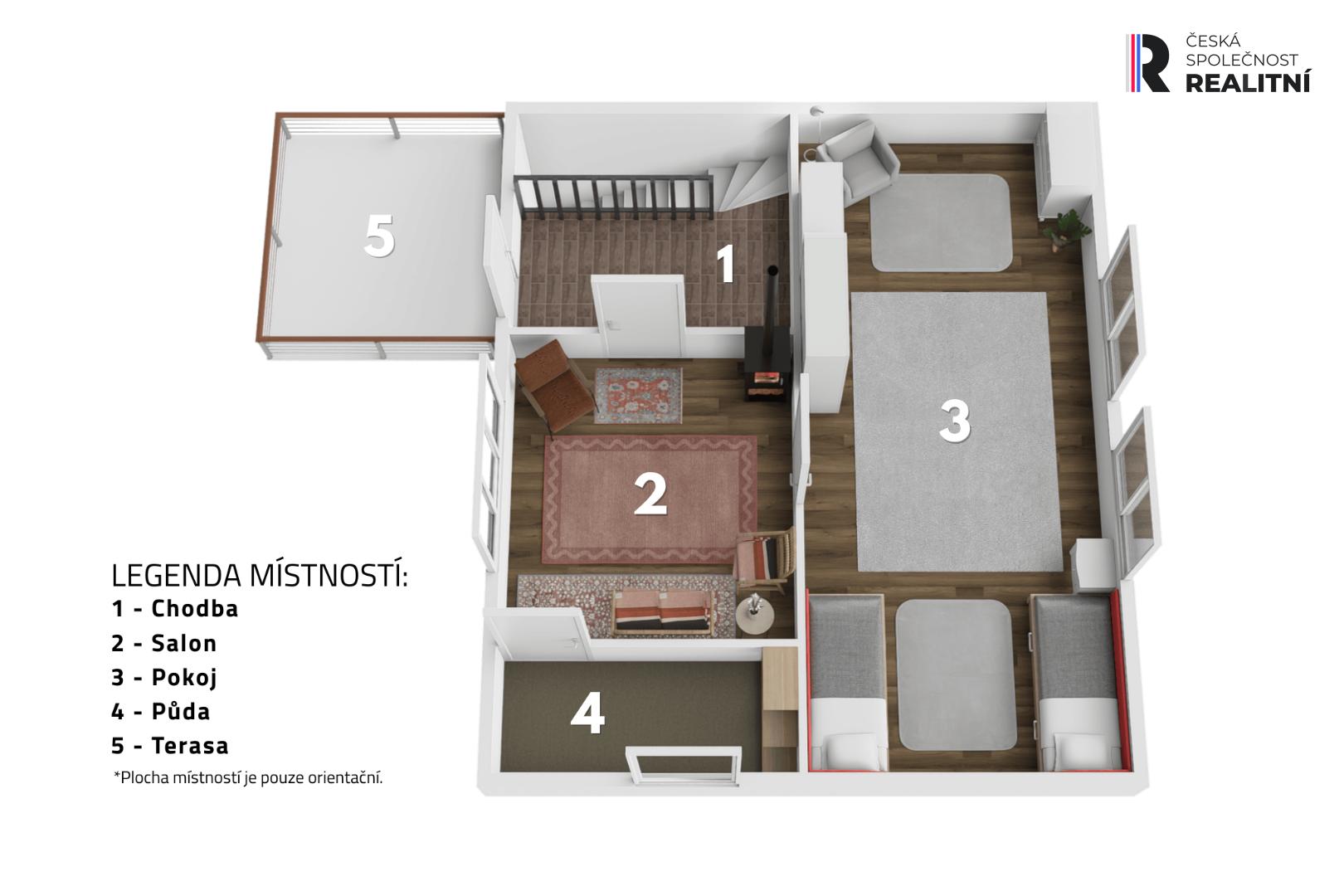+ podkroví disponuje dvěma pokoji + malá komora